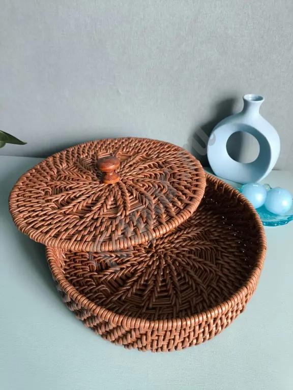 Хлебница. Размер 30 см в диаметре . Сплетена из бумажной лозы. Обработана лаком разрешенным при контакте с пищевыми продуктами.